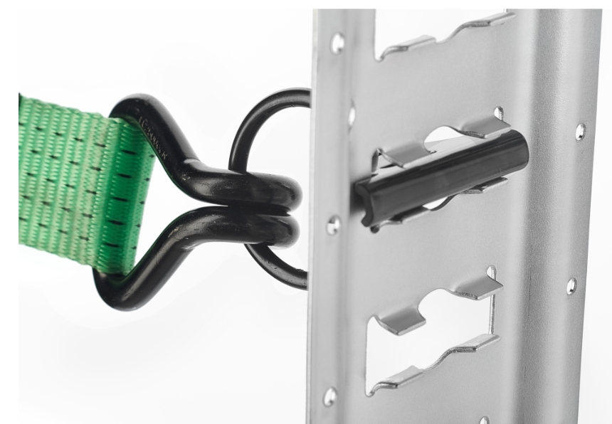 Кольцо HITCH ER405 для такелажной рейки E-Track, черного цвета, артикул SZ067444, является универсальным связующим элементом между крюком стяжного ремня и такелажной рейкой.
